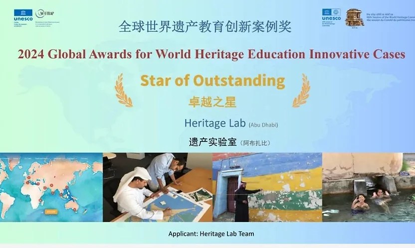 Alia Yunis accepted the award for HeritageLab at the 2024 Awards for World Heritage Education Innovative Cases, by the World Heritage Institute of Training and Research for Asia and the Pacific Region under the auspices of UNESCO (WHITRAP) at the UNESCO 46th session of the World Heritage Committee, New Delhi, India.